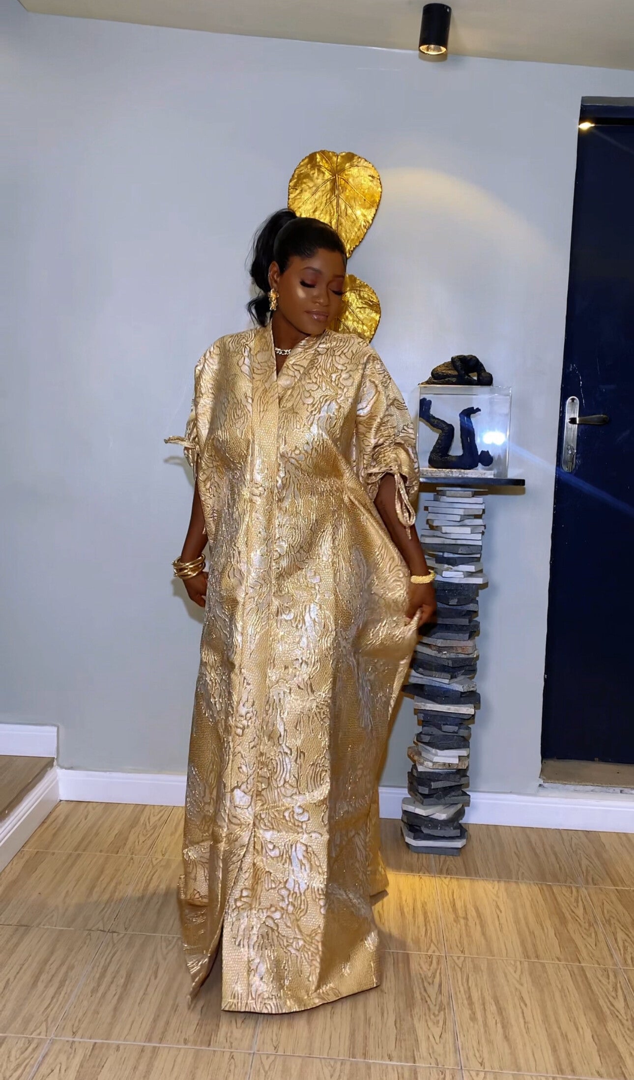 Step out in style with the Daisy Brocade Dress, a beautifully tailored African women’s outfit designed for elegance and comfort. Crafted from premium brocade fabric, it features an inner waistline belt that creates a flattering, cinched waist effect.