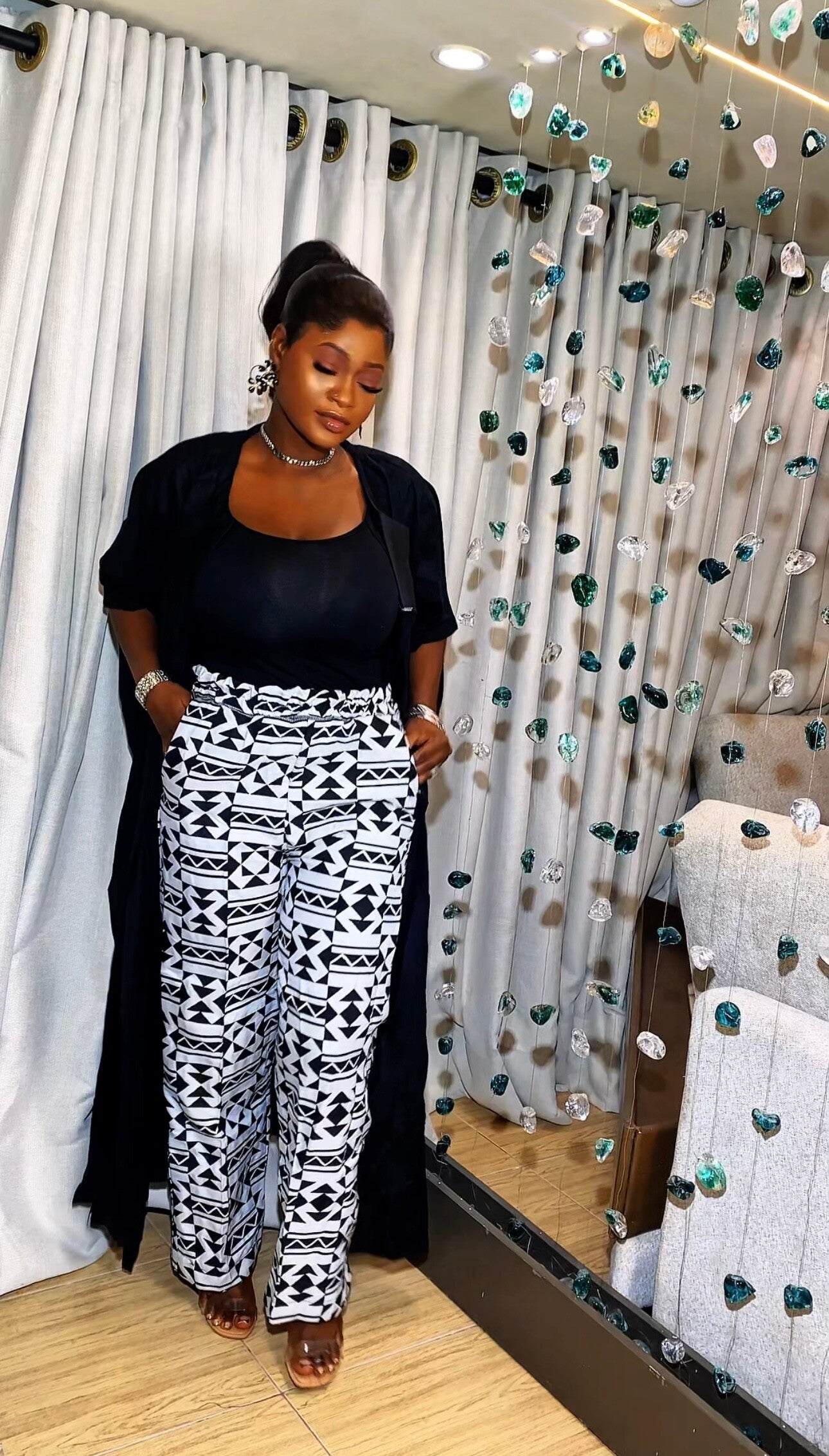 The Tito Akwete Pant is a beautifully tailored piece crafted from authentic Akwete fabric, known for its bold patterns and cultural heritage. Designed for women who value both comfort and elegance, this pant blends traditional African artistry with modern style.