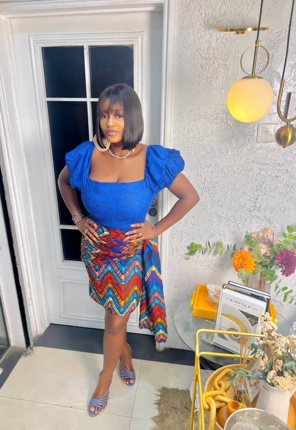 100% Cotton wax print dress. Full lining and comes with scarf