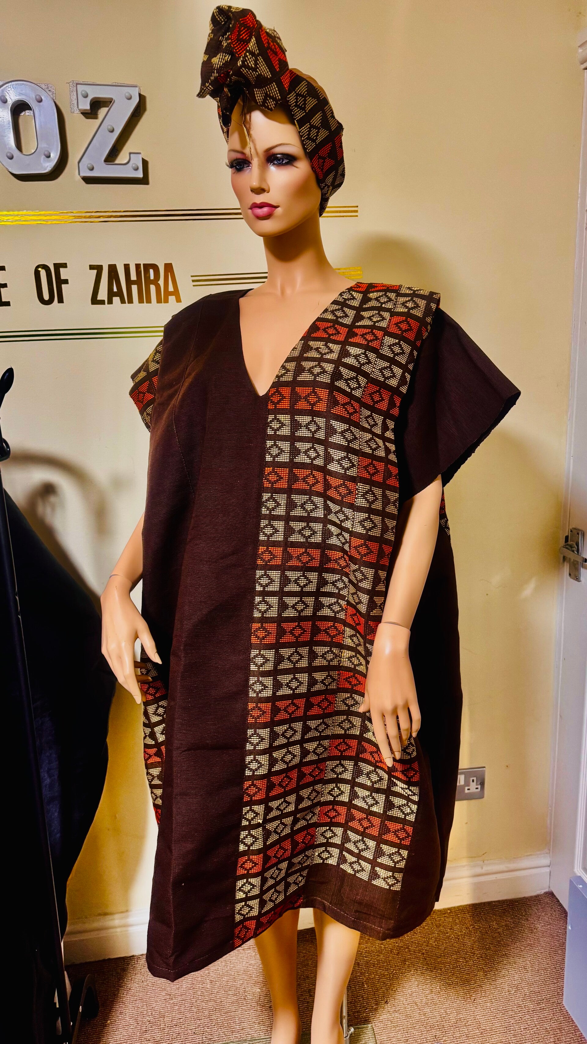 Step out in elegance with our Nana Kente & Asooke Combo Dress, a stunning African mid-length dress designed for modern women who love traditional style. This outfit features a structured shoulder design for a bold, regal look and comes complete with a matching Kente headscarf.
